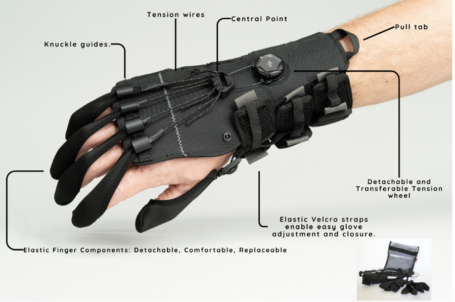 Een van de opvallendste kenmerken van de MadGlove Assist is het modulaire ontwerp. Hierdoor kunnen gebruikers en therapeuten kiezen uit verschillende vingerhulzen, waardoor ondersteuning op maat mogelijk is om aan individuele behoeften te voldoen.